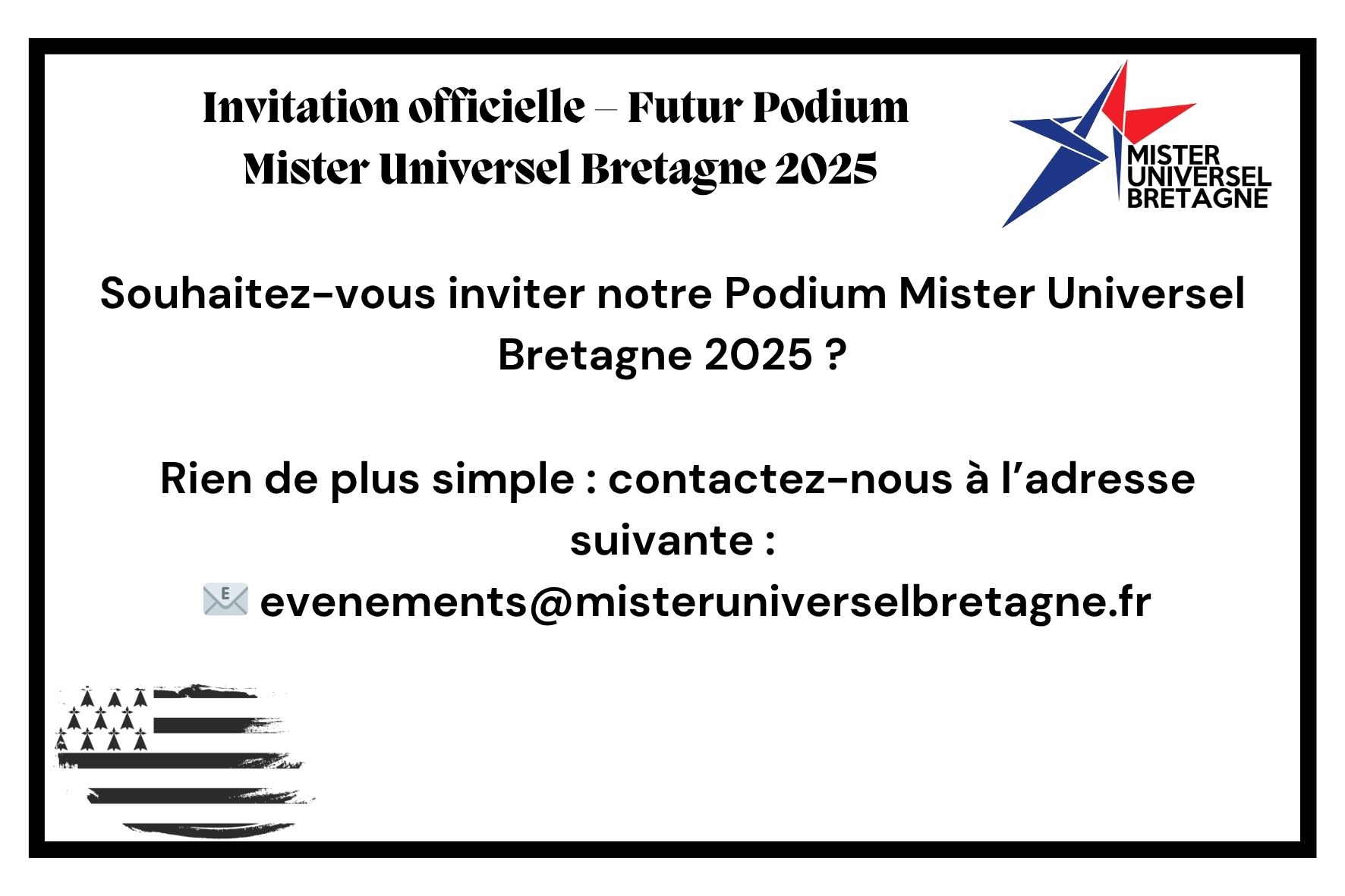Contactez-nous par email à : evenements@misteruniverselbretagne.fr